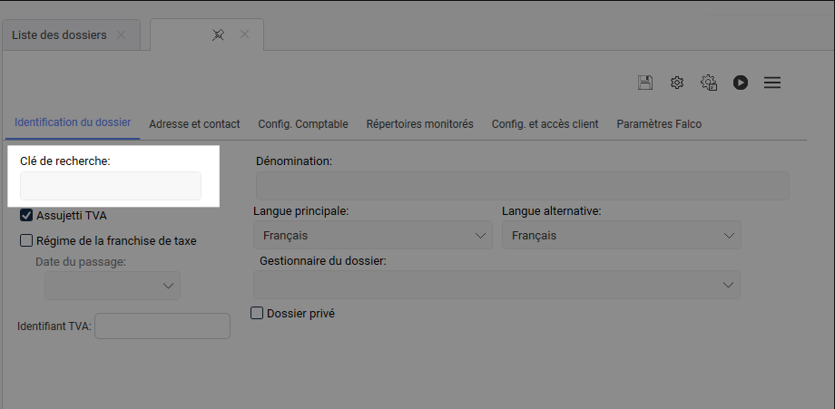 • Dossier Horus : identifiant de votre dossier dans Horus. C’est votre comptable qui est le mieux placer pour vous communiquer l’information. Attention, il faut renseigner la « Clé de recherche » (SearchKey) présente dans Horus.